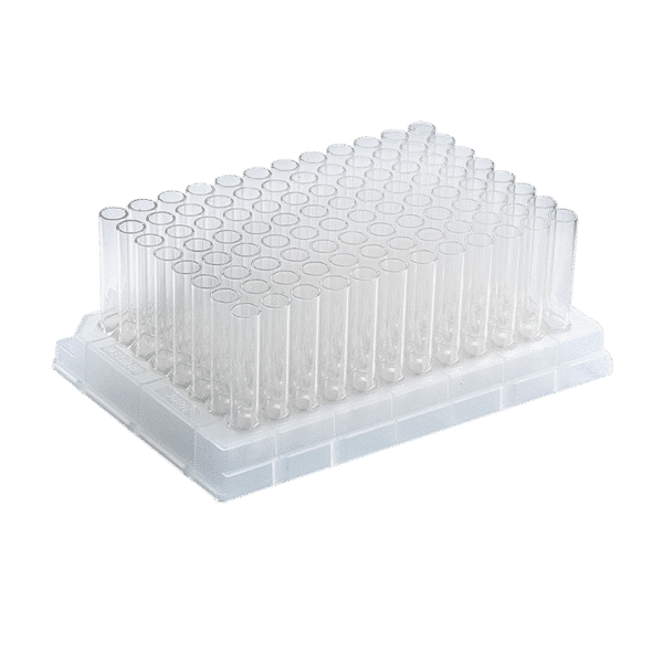 The Hirschmannâ„¢ 96-Well Glass Tubes are engineered for laboratories requiring high chemical resistance and sample integrity. The glass tubes, also known as insert, are fully made from glass, ensuring minimal leaching and optimal purity. Glass tubes are renowned for its inert properties, offering exceptional clarity and resistance to chemicals and thermal stress. The 96-well glass tubes have a volume of 1.2ml.